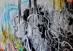 A selection of my paintings which go back to my years at sixth form college. These paintings have been inspired by different influences and visits such as pop art and a trip to New York. My love for colour when I was younger can be seen in these paintings. Most of these were painting using acrylic. The music themed painting was created using the medium of chalk, charcoal and oil pastels.